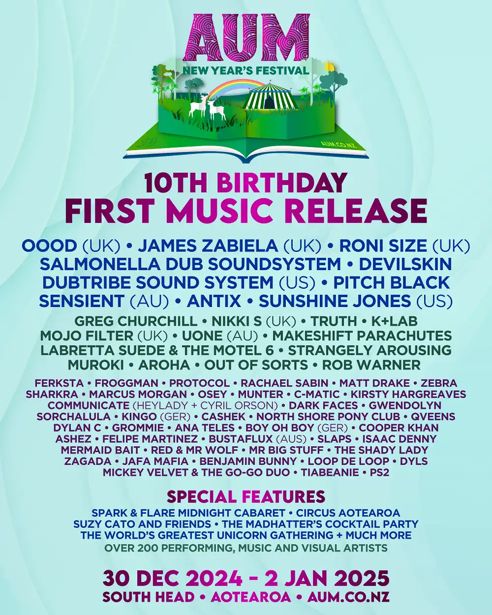 “We have secured the mega talents of some artists we have had our eye on for years, some who are global icons - Roni Size, James Zabiela, Oood, Salmonella Dub Soundsystem, Sensient, Dubtribe Sound System, Pitch Black, Antix and more. We have also gathered some of our favourite friends and legends of the Aotearoa music scene for the special occasion. They include artists who supported AUM as we grew from small beginnings into the thriving creative community it is today, and our two takeover stages by LO-FI Productions and Science of Sound. We’ve also sought out some kick-arse emerging talent too.”