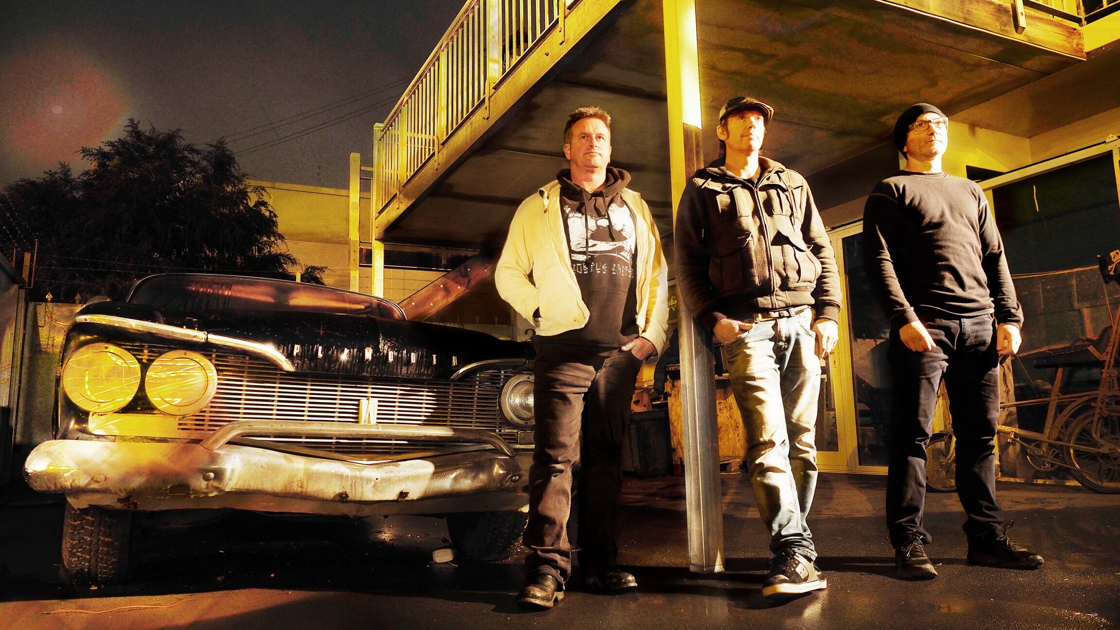 In the early ’90s, New Zealand’s liquor licensing laws changed, allowing pubs and clubs to stay open late and revitalizing the country’s live music scene. Members of the band then called Golf Course Alligators seized this opportunity and, in late 1992, Andrew Penman (guitar), Mark Tyler (bass), and Dave Deakins (drums) became Salmonella Dub. In the early days they lacked money for a sampler and used DIY solutions by hooking up an on/off foot pedal to the motor of a cassette player in order to drop samples by foot in real time from tape on stage. These samples would come from whatever was on the TV at the time, whether it was the news or a Cheech & Chong movie. Lacking the funds for cassettes, they raided the bins of a record store and found discarded copies of Teenage Mutant Ninja Turtles albums that served as their early tape stock.